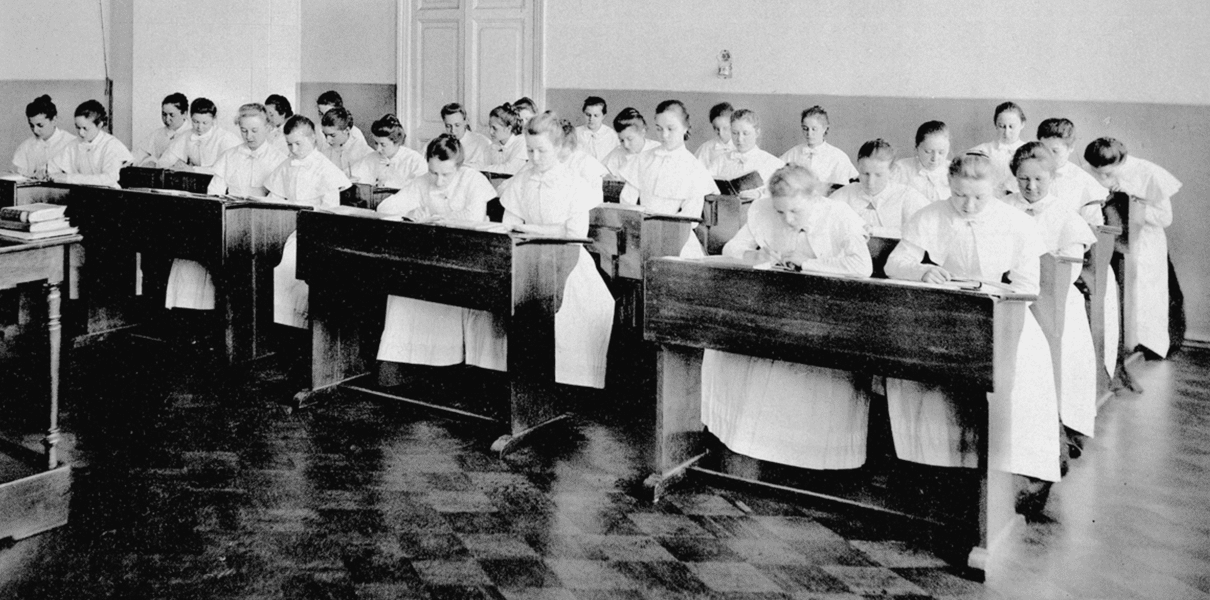 В женской школе все было так же как и в мужской, за обучение приходилось платить большие деньги. Девушек, которые учились в лечебном учреждении называли белые голубки. Такое название связано с посвящением своей жизни тяжелому делу служению людям в те минуты, когда к человеку приходит беда.